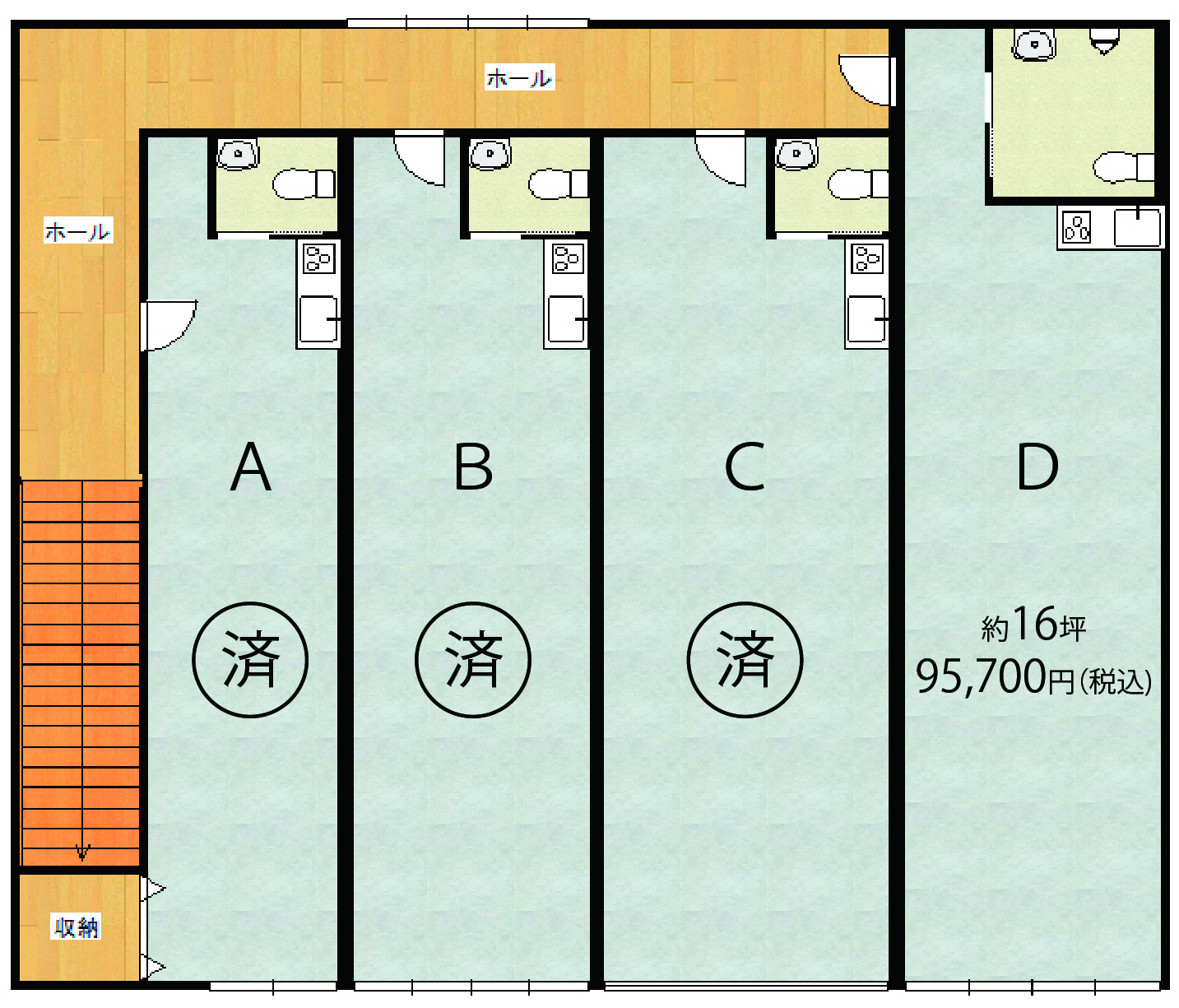 D:空 約16坪 95,700円(税込)